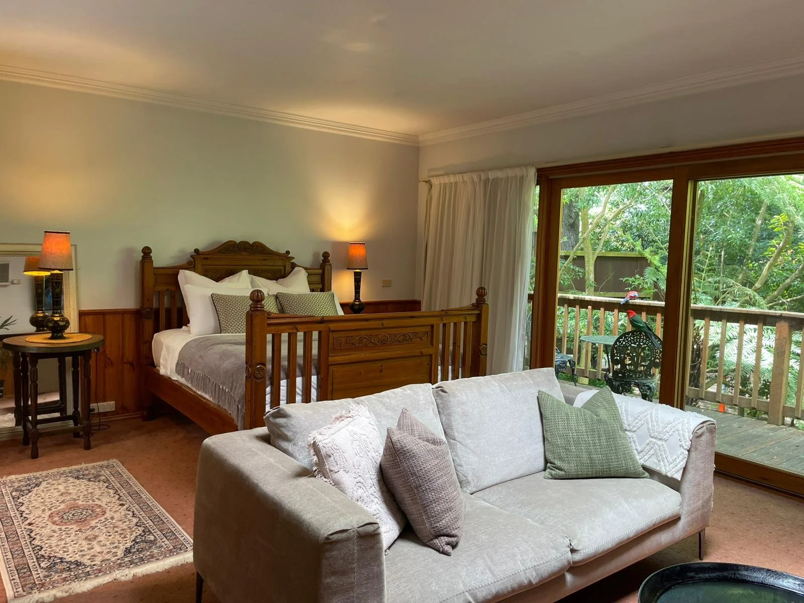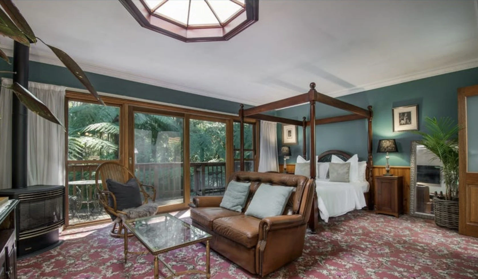Features Australian outback style decor with luxurious furnishings and an extra large spa with rainforest views.